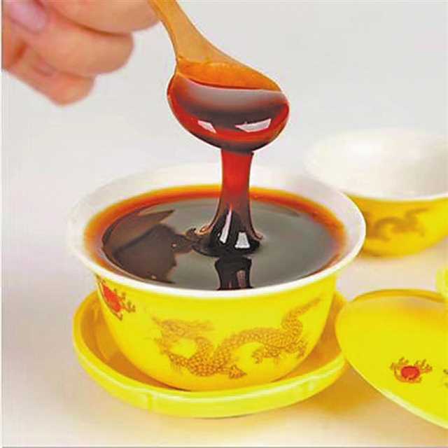 雪梨膏,祖?zhèn)髅胤剑欧ò局啤⒉烧木G色雪梨,經(jīng)選果清洗晾干、粉碎過(guò)濾取汁、柴火古法熬制、冷凝包裝而成,其色深褐,膏體粘稠。